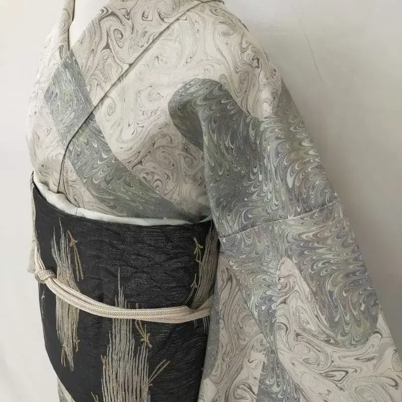 새상품급 순수 실크 이중 기모노 스미나가시 호몬기 단품