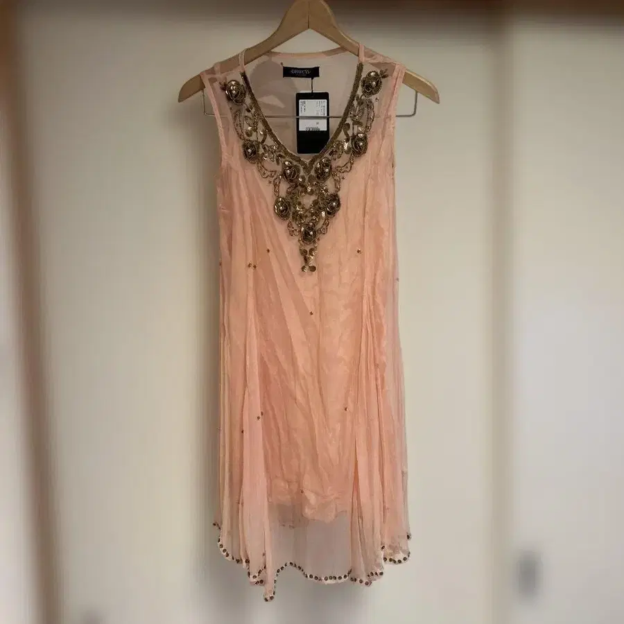 DRWCYS 핑크 비즈 자수 슬리브리스 드레스