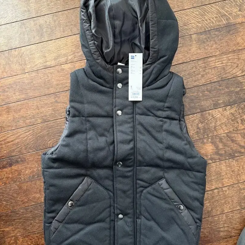 GU 후드 부착 다크 그레이 퀼팅 충전솜 베스트