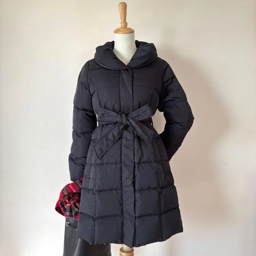 [새상품급] 퀸즈 코트 다운 코트 롱 블랙 허리 리본 숄