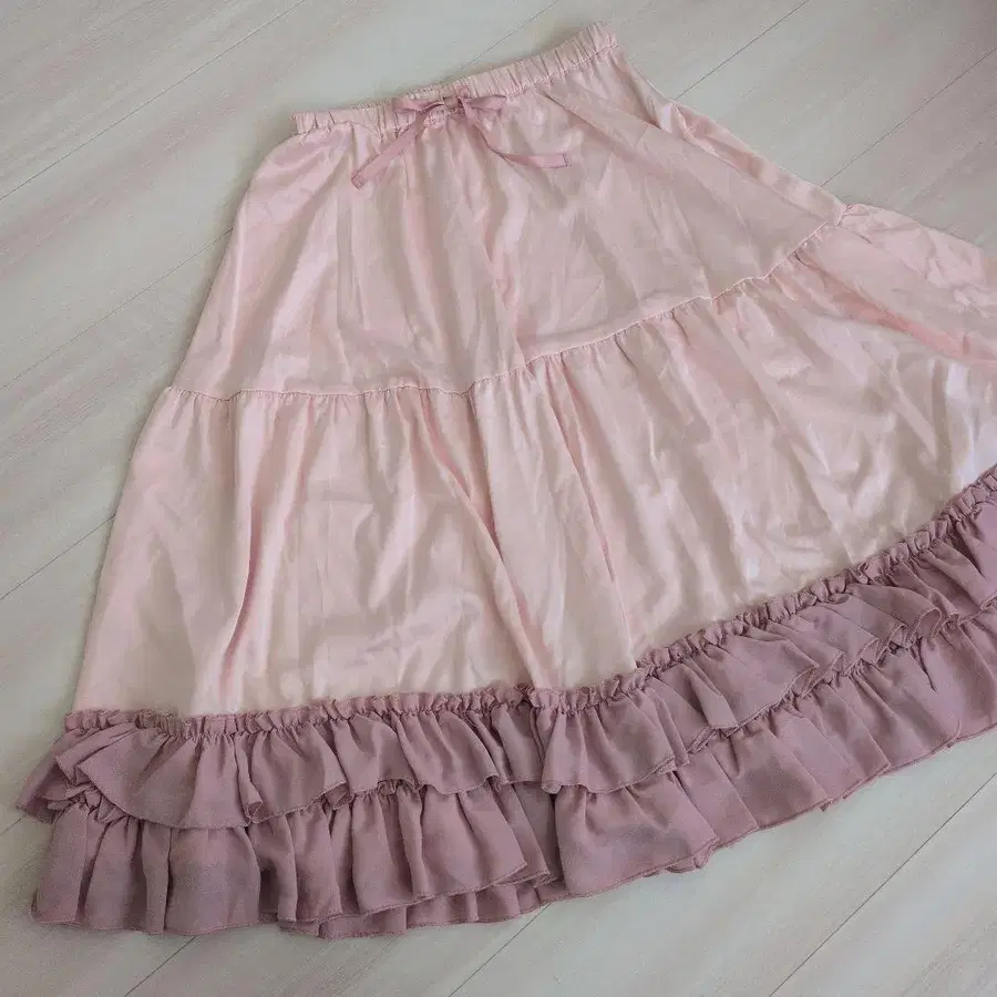 엑시즈팜 미디 프릴 페치 스커트 핑크 계열