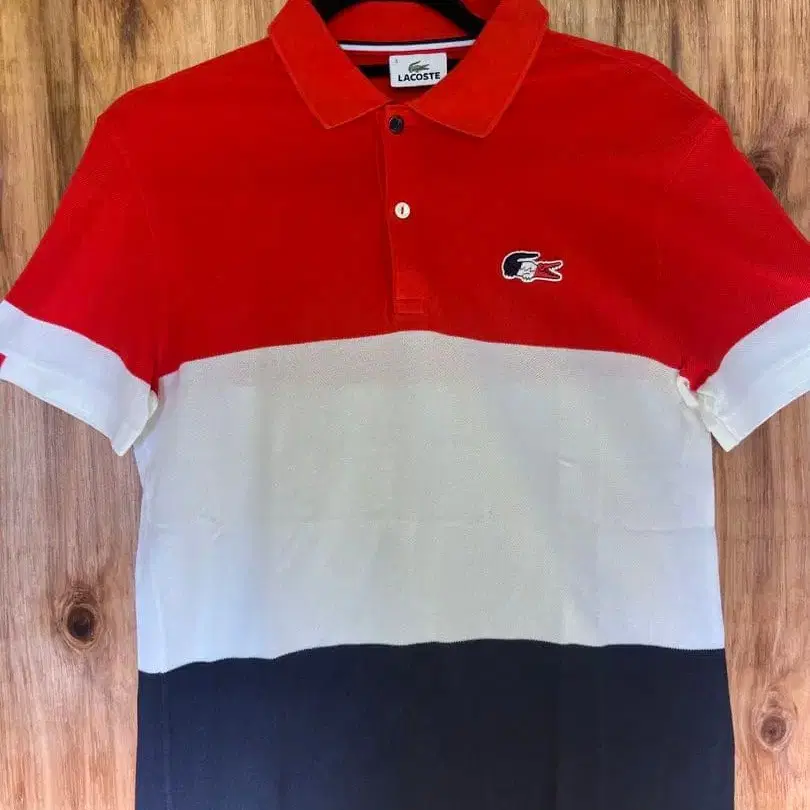 LACOSTE 피케 셔츠 빨간색/화이트/네이비 사이즈 3