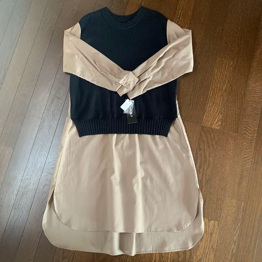 택 포함 새상품 도킹 니트 베이지 쉬폰 원피스