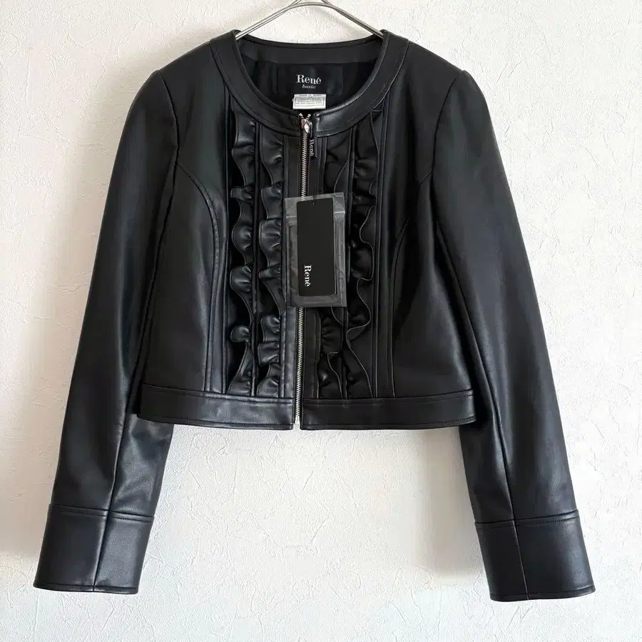 택 포함 미사용 Rene 프릴 에코 가죽 자켓 워셔블 블랙 34