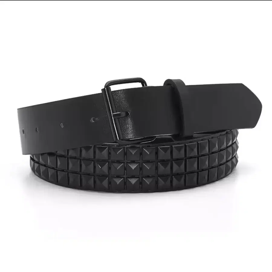 • 스터드 블랙 가죽 벨트 피라미드 3연
