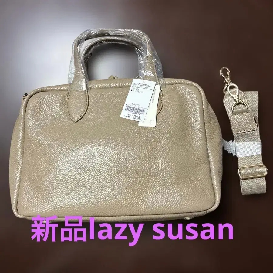 베이지 가죽 핸드백 숄더 스트랩 포함