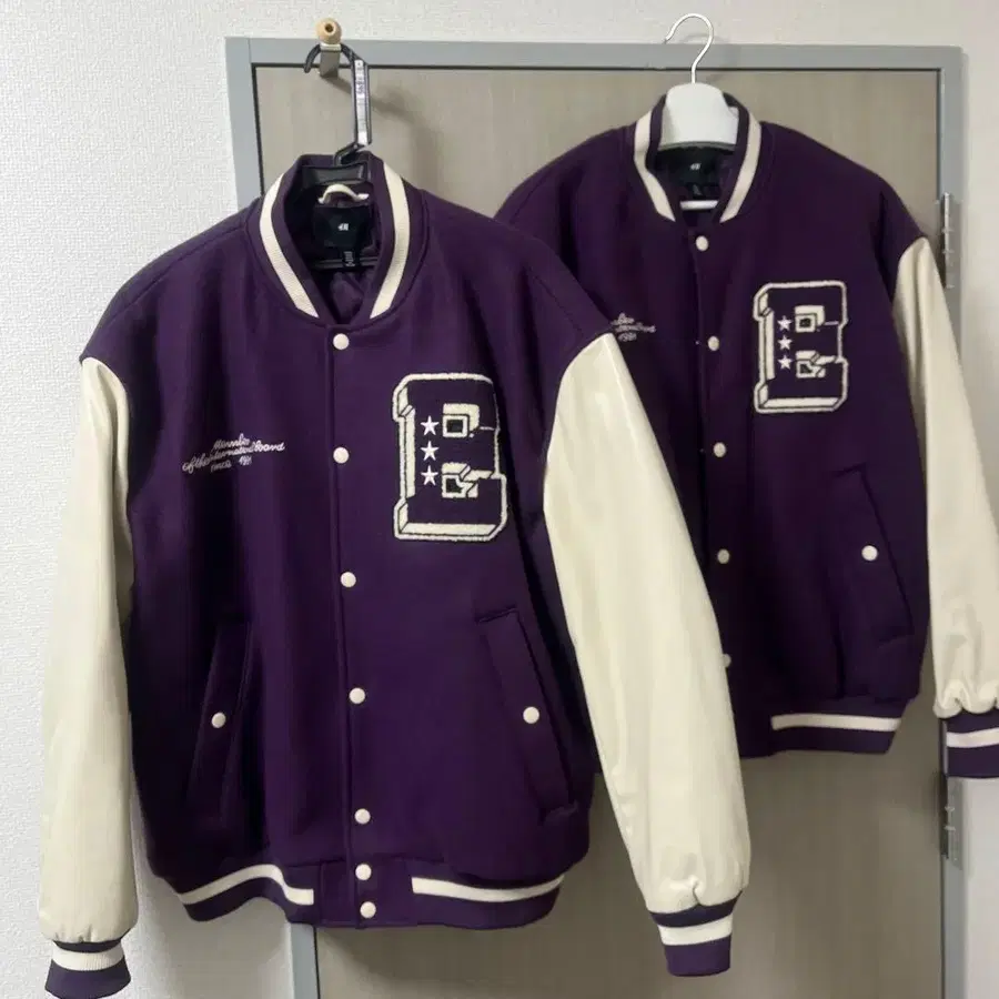커플룩 H&M 바시티 자켓 퍼플 L, XL