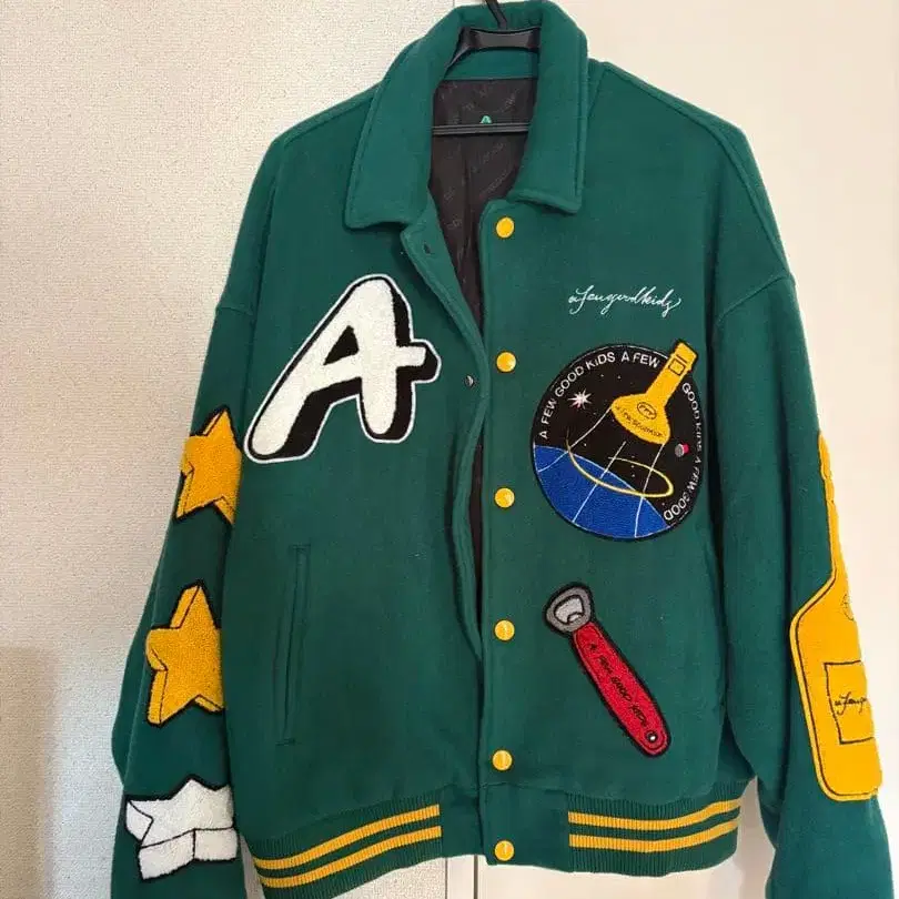 a few Goodkids 바시티 자켓 그린 컬러 자수