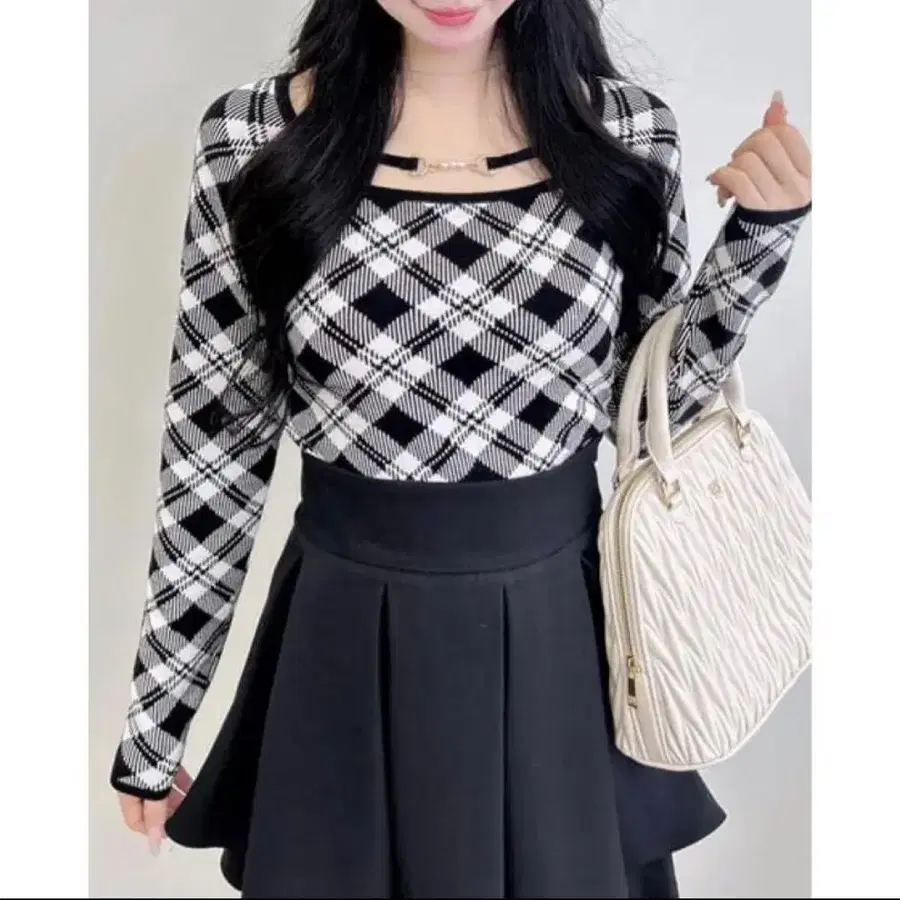 INGNI 펄 비트 체크 니트