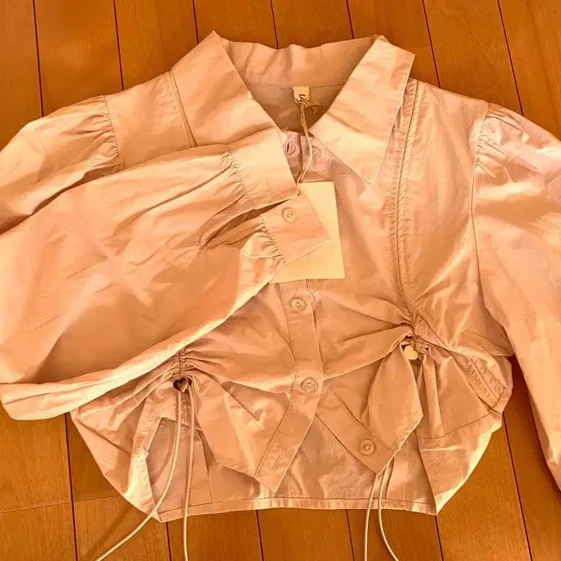 [ 한국에서 구매 ] 핑크 드로우 스트링 긴팔 셔츠 ( 택 포함 )