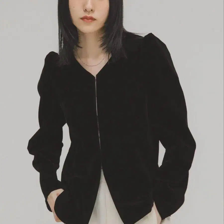 KBF 퍼프 슬리브 벨로아 블라우스 블랙