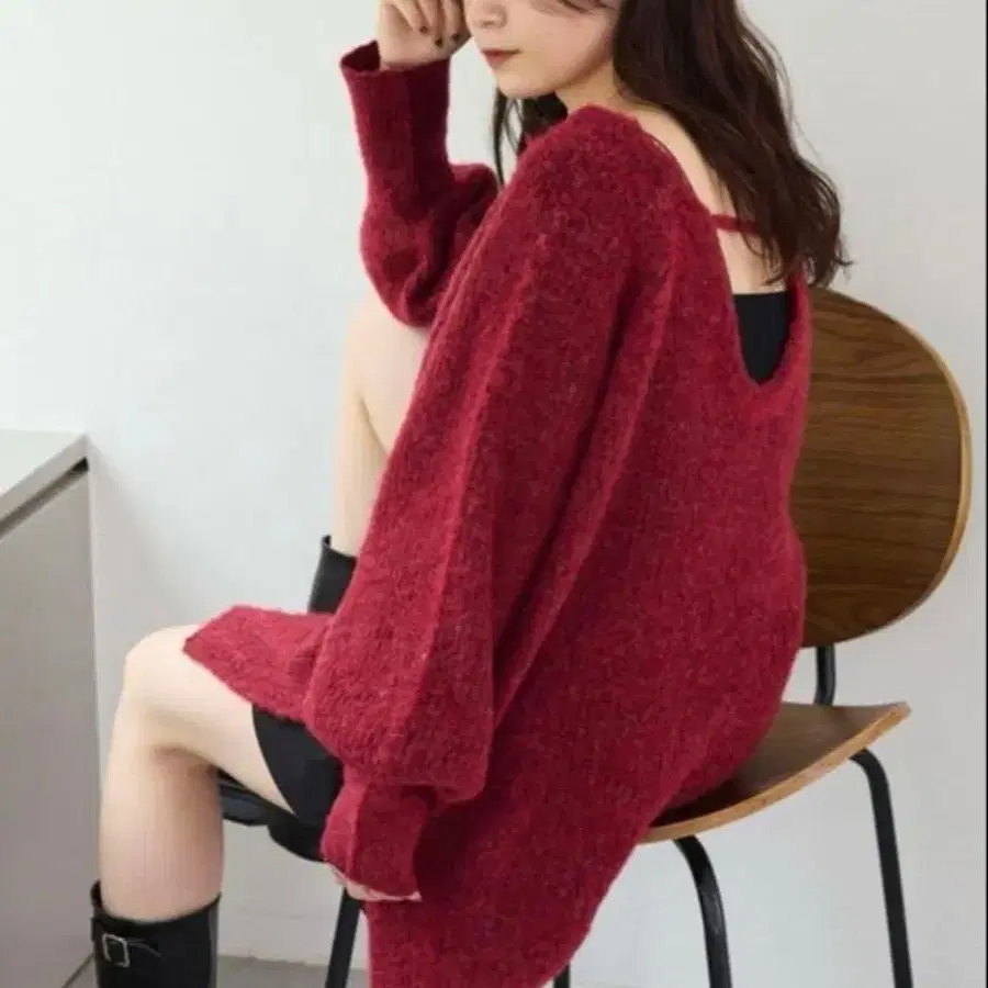 Kastane 멜란지 V넥 니트 풀오버 니트 빨간색