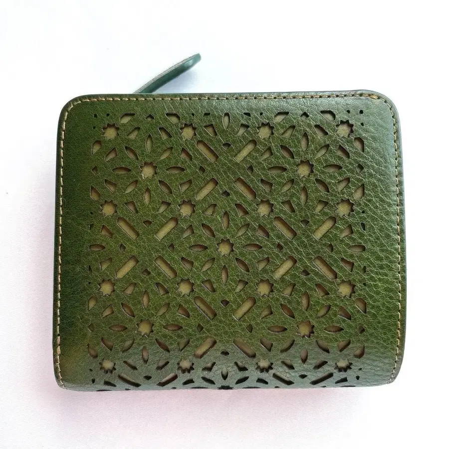 genten 겐텐 다이아 컷워크 접이식 지갑 포레스트 그린