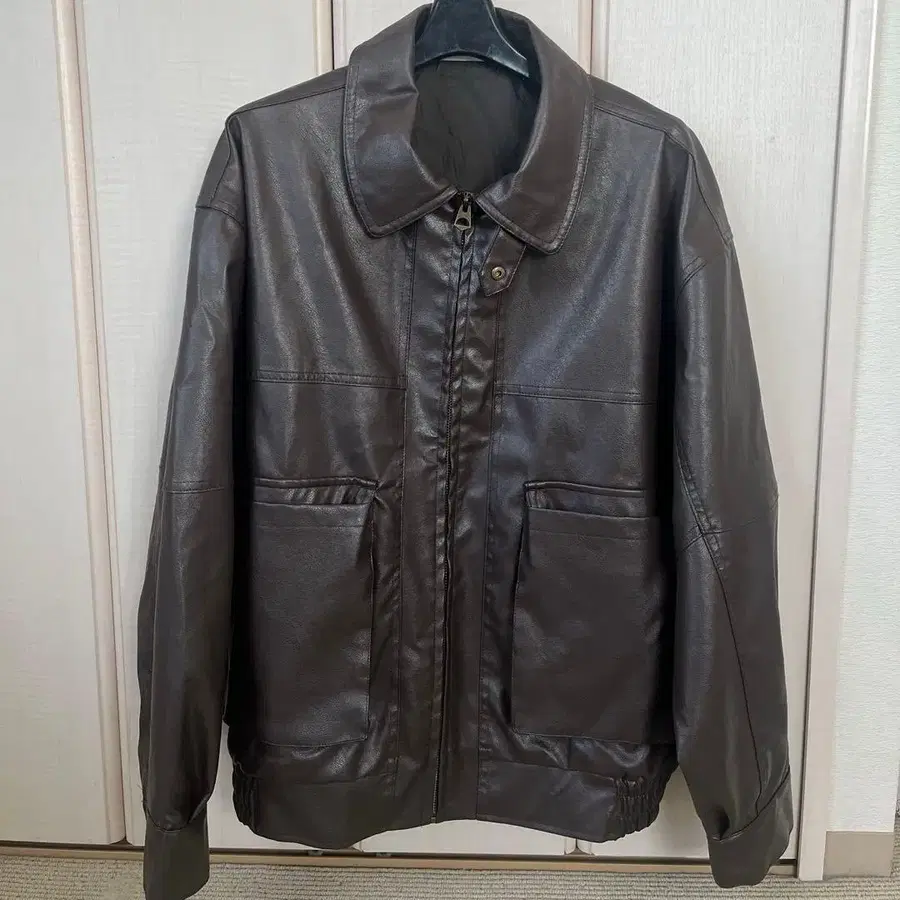 다크 브라운 오버 사이즈 가죽 자켓