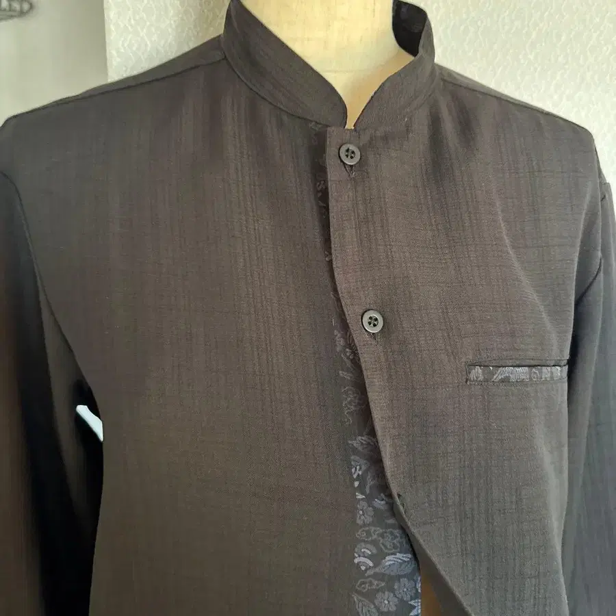 MAJUN 블랙 스탠드 카라 셔츠 카리유시 S