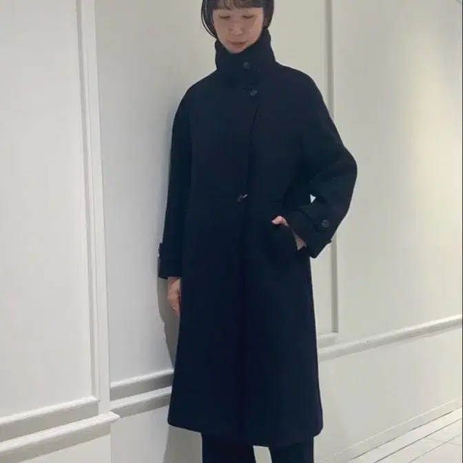 유나이티드 애로우즈 소프트 멜톤 스탠드 카라 코트 네이비
