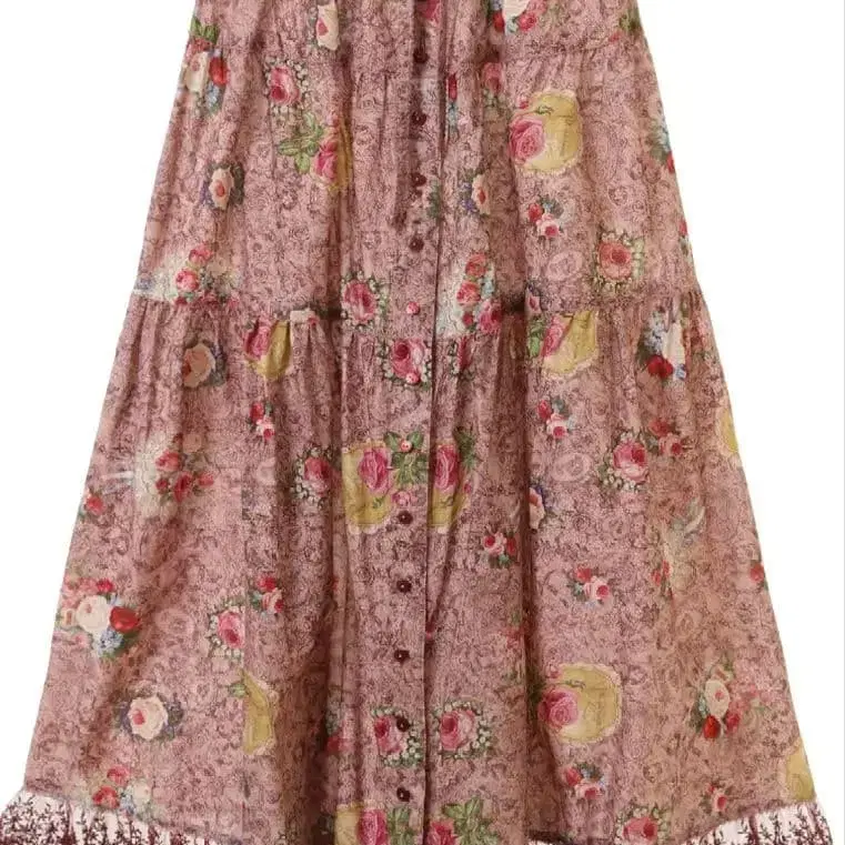샤비 시크한 하트의 앤티크풍 리버 레이스를 모티브로, 장미, 물망초, 은방울꽃, 제비꽃, 라일락 등 노스탤지어풍 그림체의 크로모스 플라워를 흩뿌린 콜라주 패브릭.