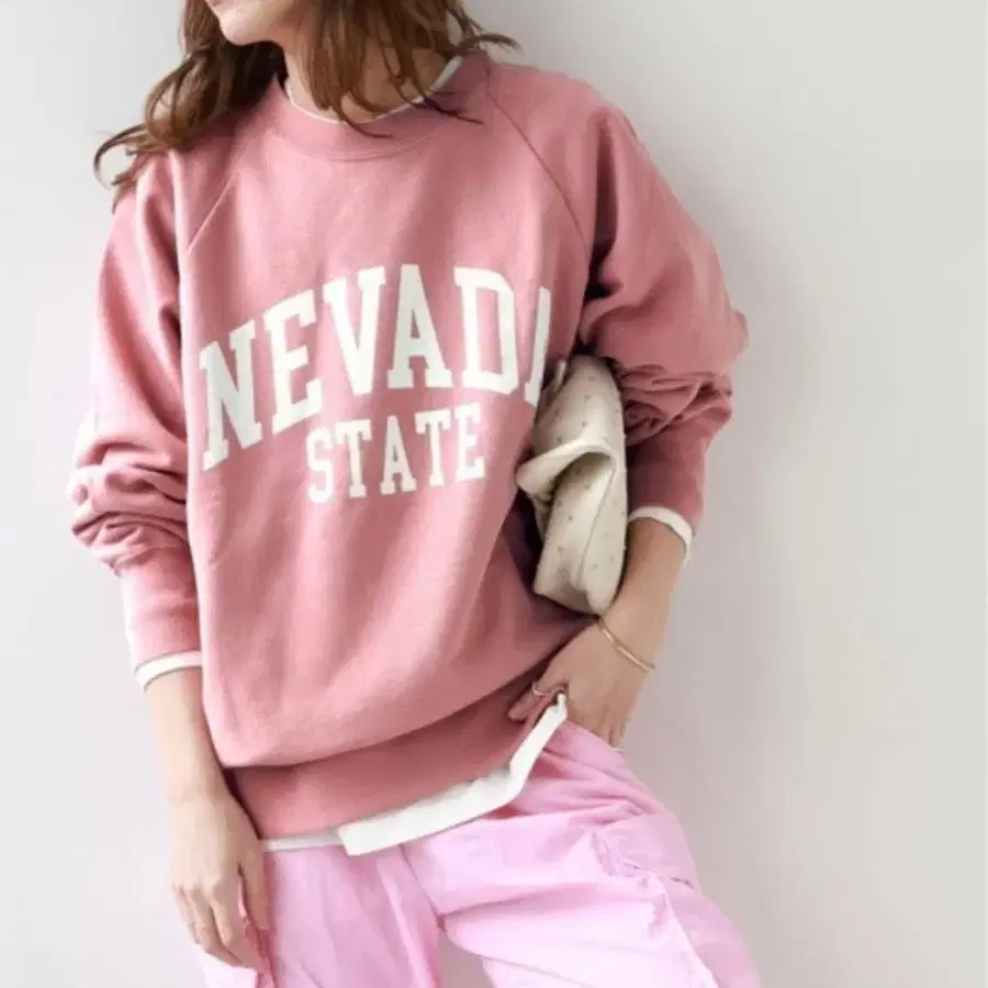 저널 스탠다드 리룸 로고 맨투맨 핑크 트레이닝복