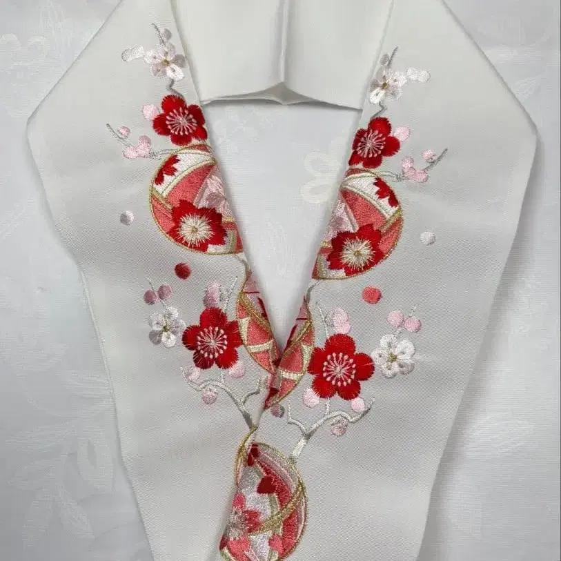 미사용 t-040 장식용 깃 자수 후리소데 성인식 매화 수구