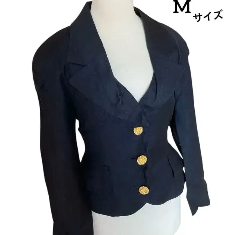 블랙 울 테일러드 자켓 골드 버튼 M 사이즈