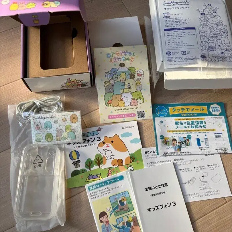 스미코구라시 키즈폰 3 빈 박스 클리어 케이스, 스트랩, 스티커 씰