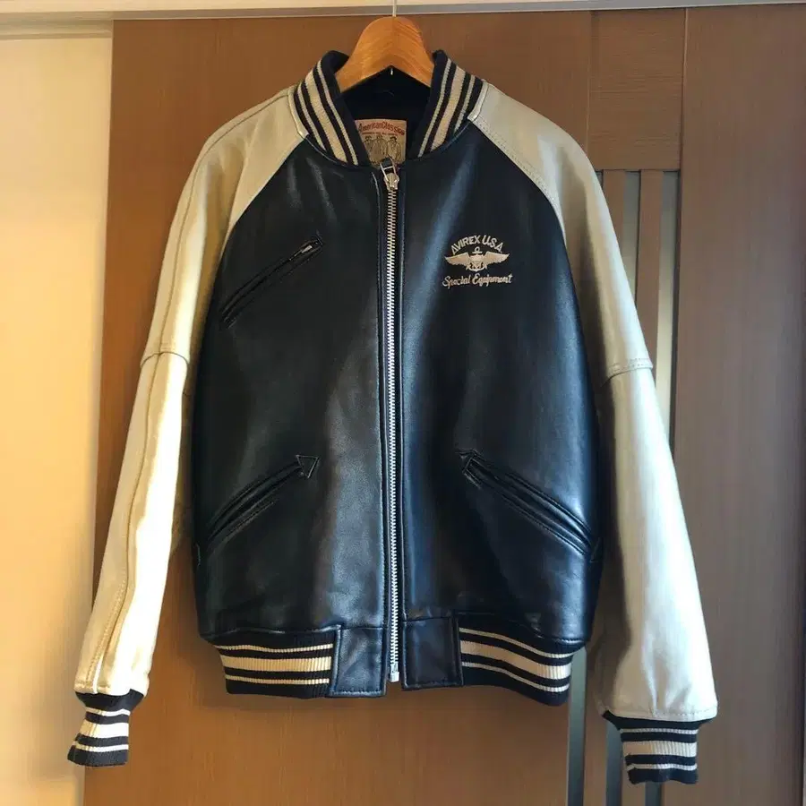 AVIREX 가죽 자켓 L 사이즈 네이비/화이트
