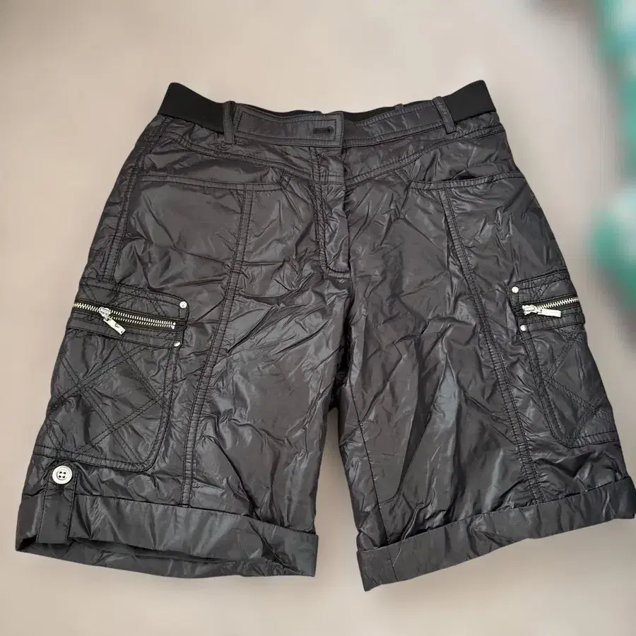 아다바트 블랙 나일론 퀼팅 숏팬츠 포켓 부착