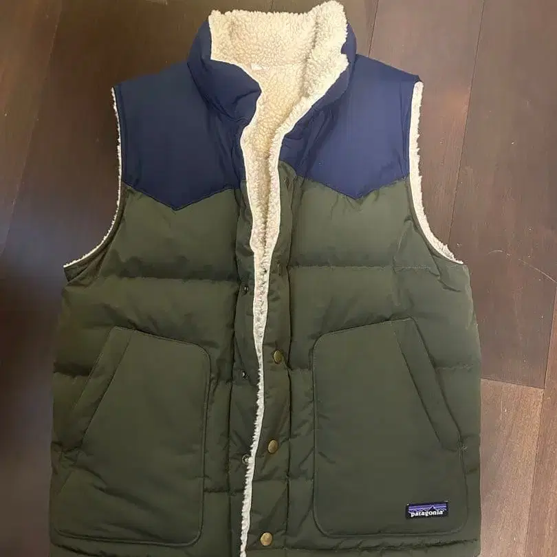 Patagonia 리버서블 다운 베스트 올리브 그린/네이비