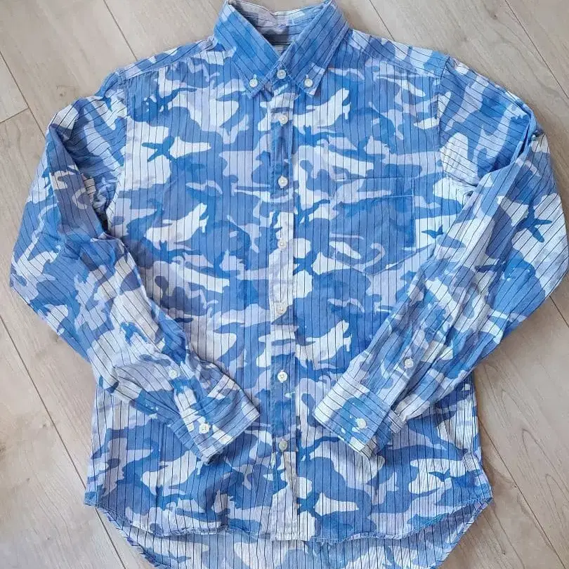 COMME CA ISM 스트라이프 카모 패턴 버튼 셔츠