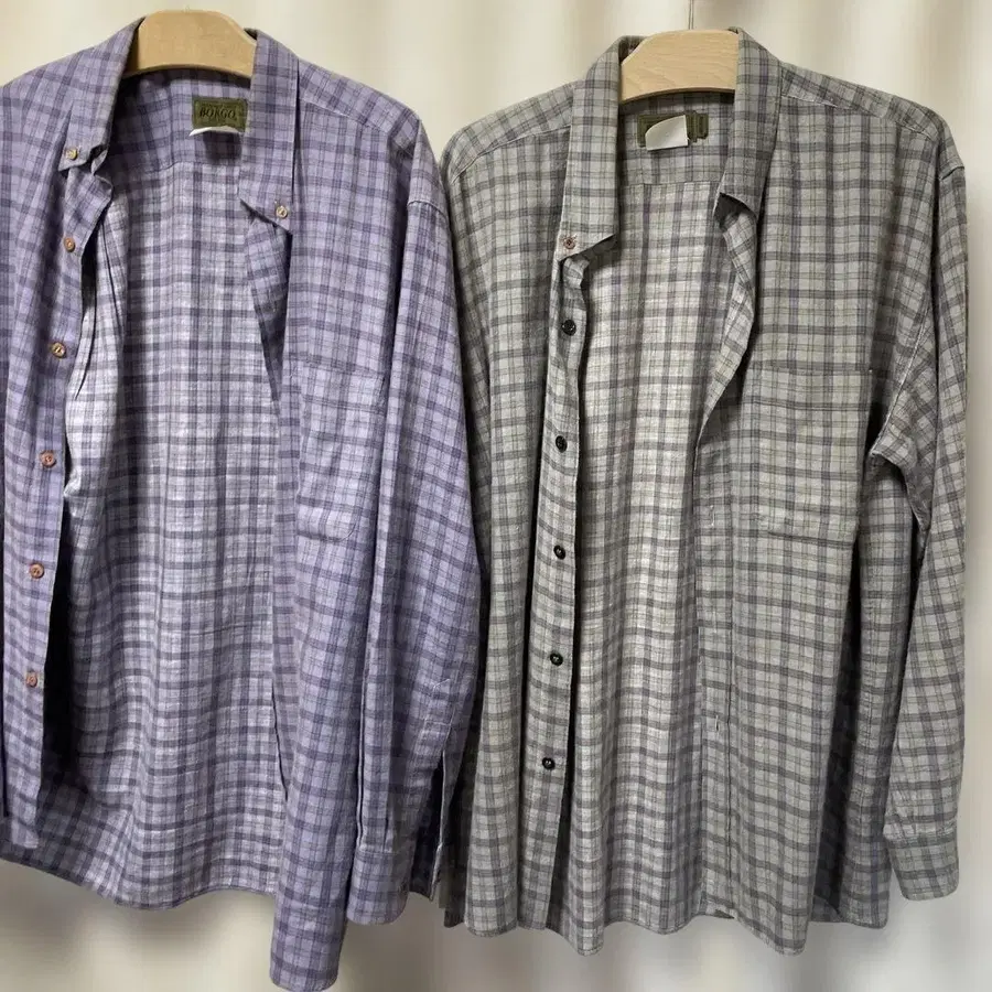 BORGO 긴팔 셔츠 M 퍼플 그레이 계열 체크