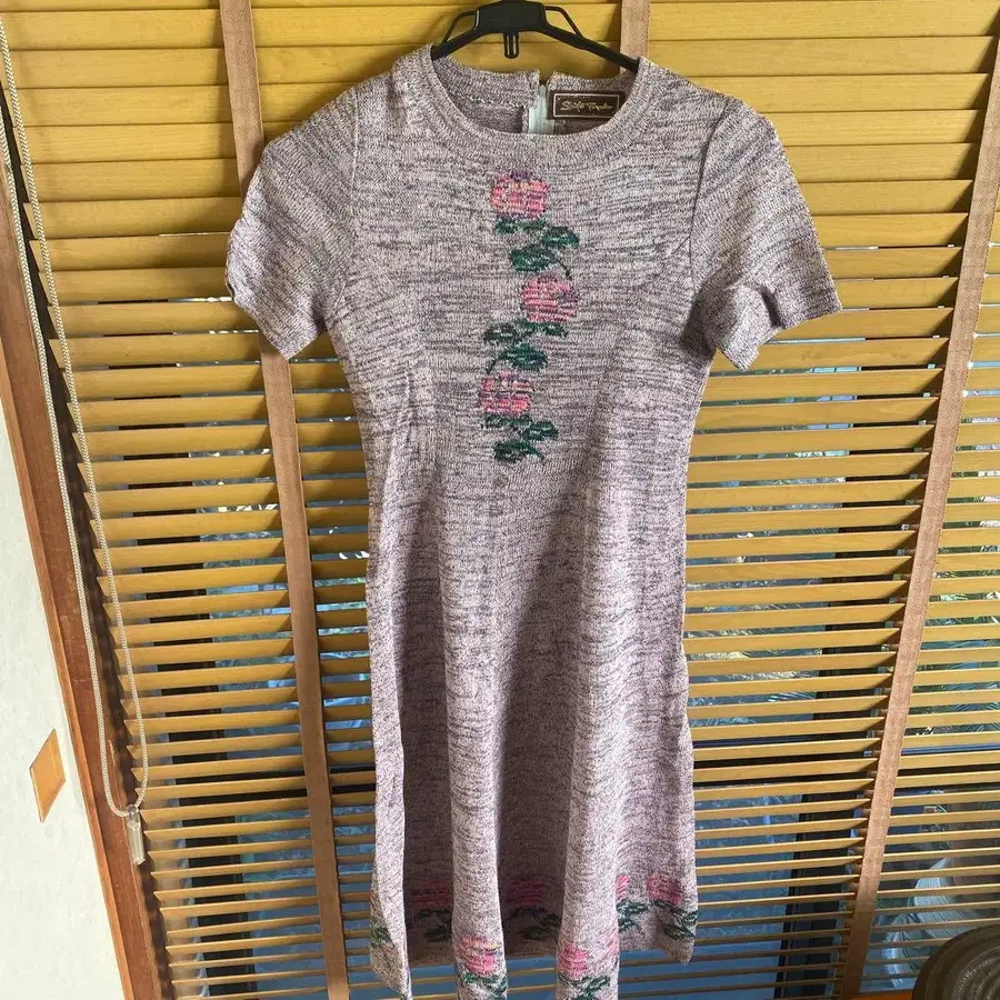 사이토 토세코 꽃무늬 자수 반팔 무릎 기장 원피스