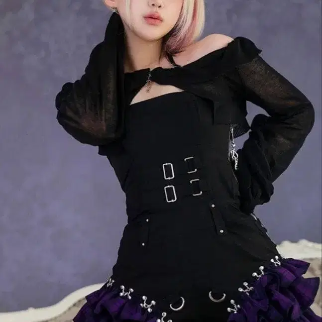 DustDevil 더스트데빌 체크 프릴 올인원 원피스 퍼플