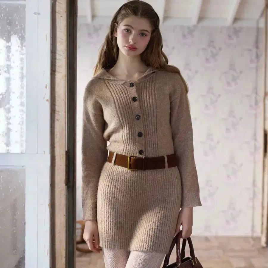 • 디홀릭 베이지 니트 원피스 허리 벨트 포함
