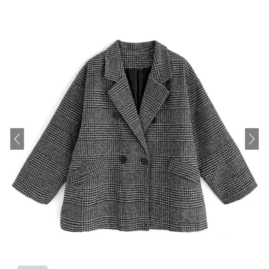 체크 무늬 노카라 피 코트