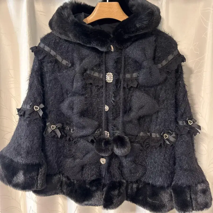 LIZLISA 밀피유 레이스 판초 블랙