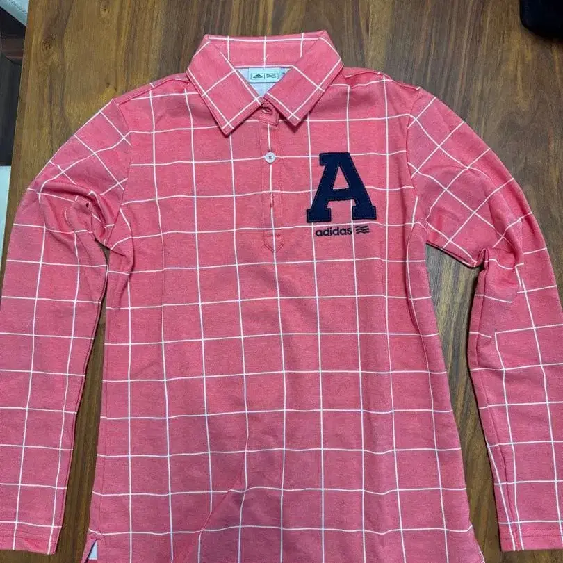 adidas 골프웨어 긴팔 셔츠 핑크 체크 무늬