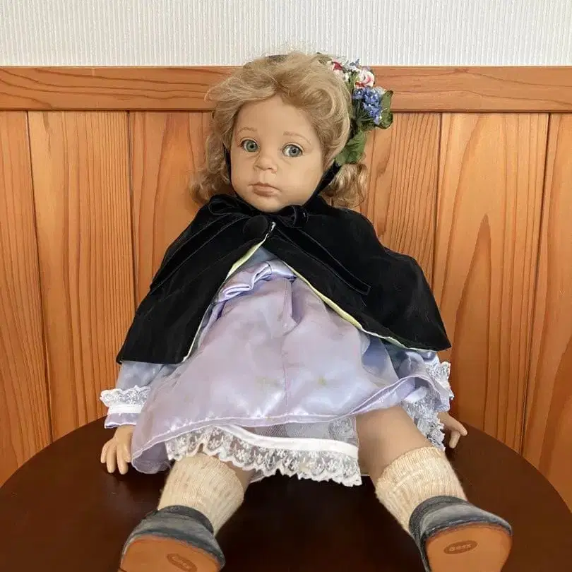 금발 인형 블랙 망토 보라색 드레스