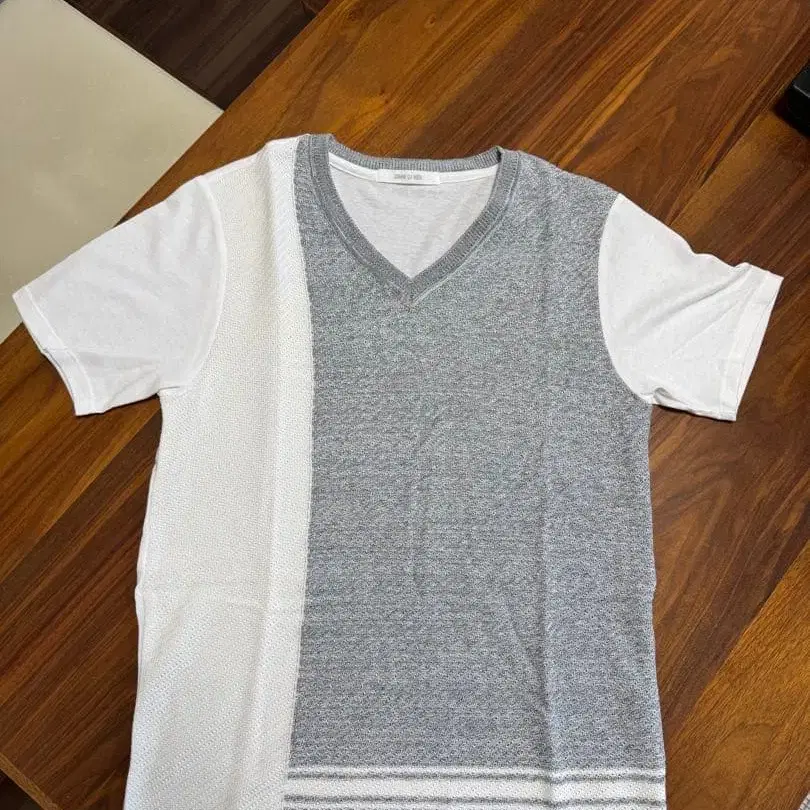 꼼사맨 그레이와 화이트의 V넥 티셔츠