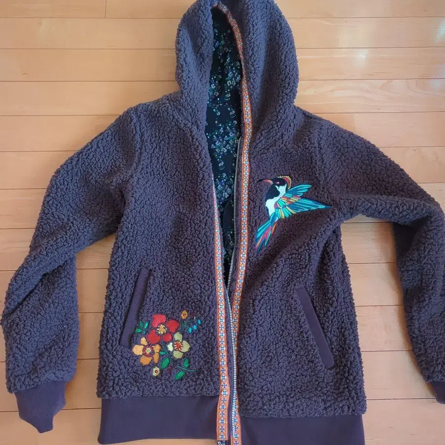 플리스 자켓 꽃무늬 자수 다크 브라운