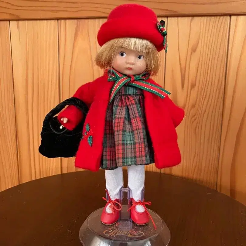 빨간색 코트의 체크 무늬 인형