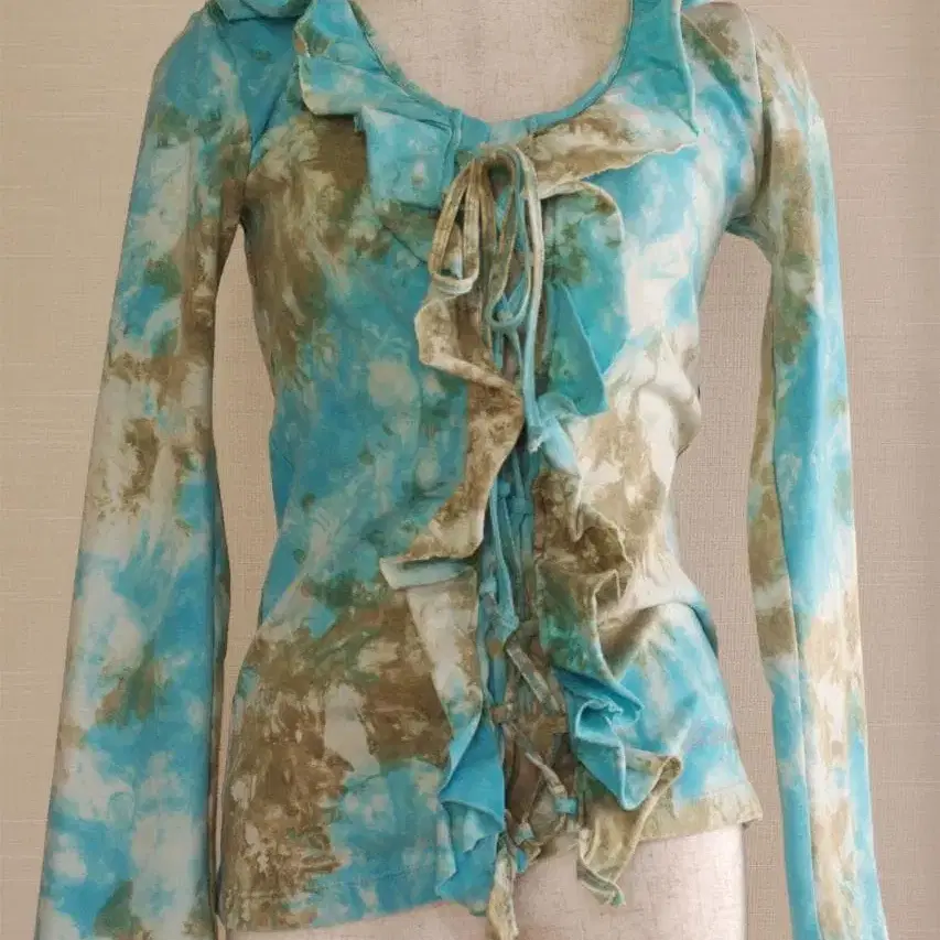 엘르 로데오 EL RODEO 긴팔 티셔츠 프릴 염색 패턴 리본