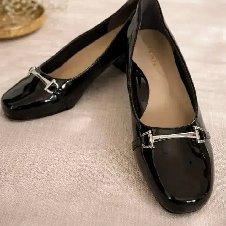[ BENEBIS ] 버클 달린 에나멜 블랙 펌프스 중간 힐 (미사용품)