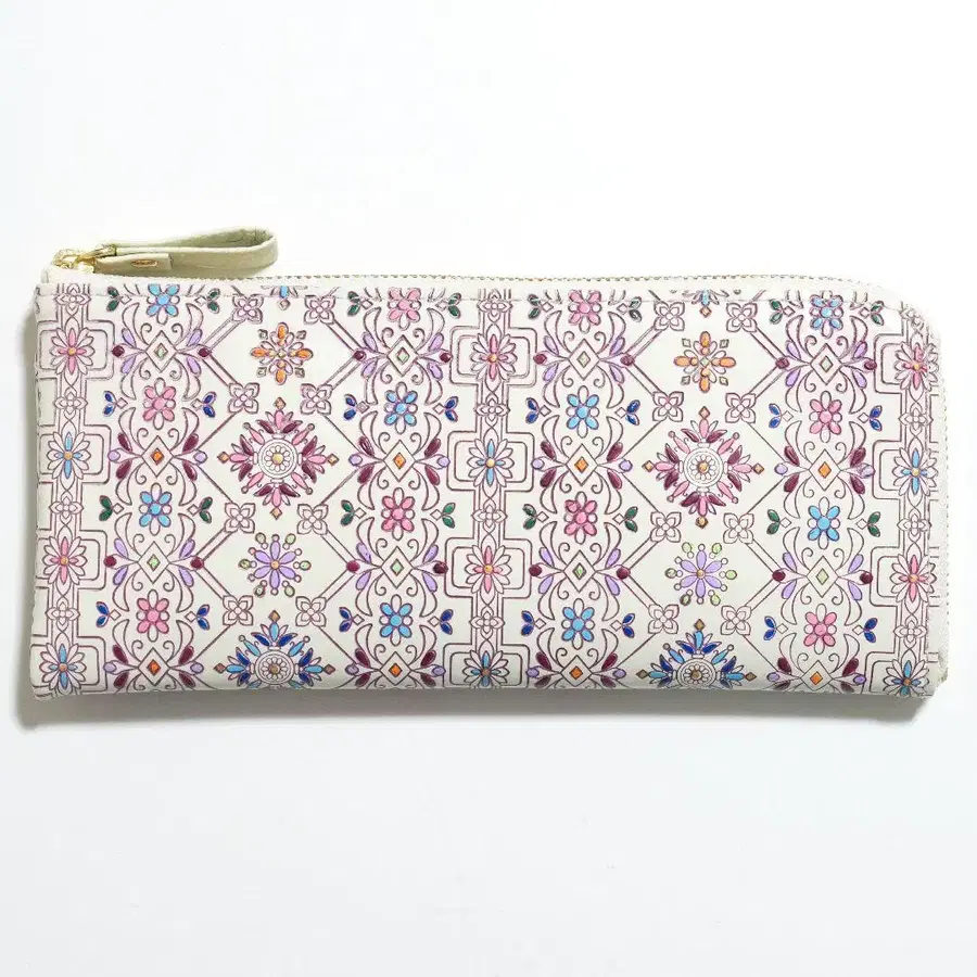 [미사용 새상품] 유젠 문고 플라워 무늬 얇은 타입 장지갑 소가죽 일본제