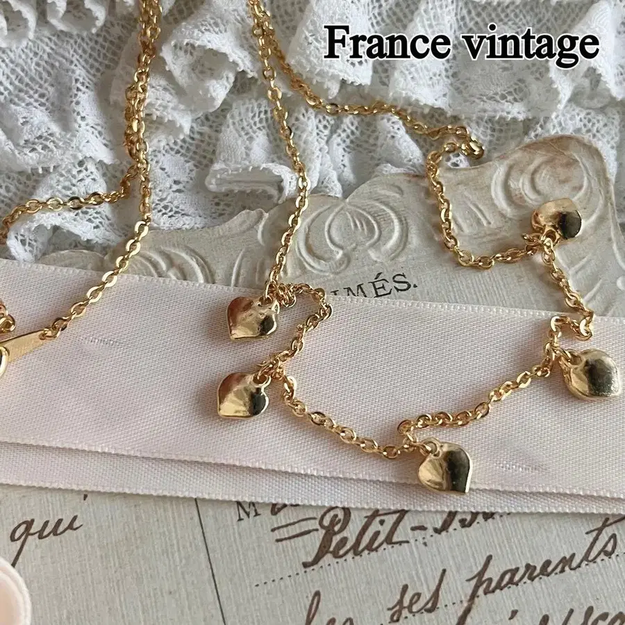 프랑스 빈티지 하트 모티브 부품 체인 목걸이