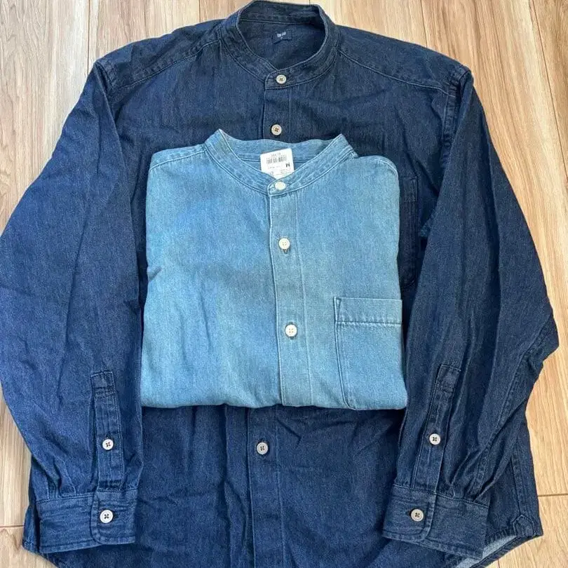 UNIQLO 데님 오버 사이즈 스탠드 카라 셔츠 M 네이비와 블루 2점