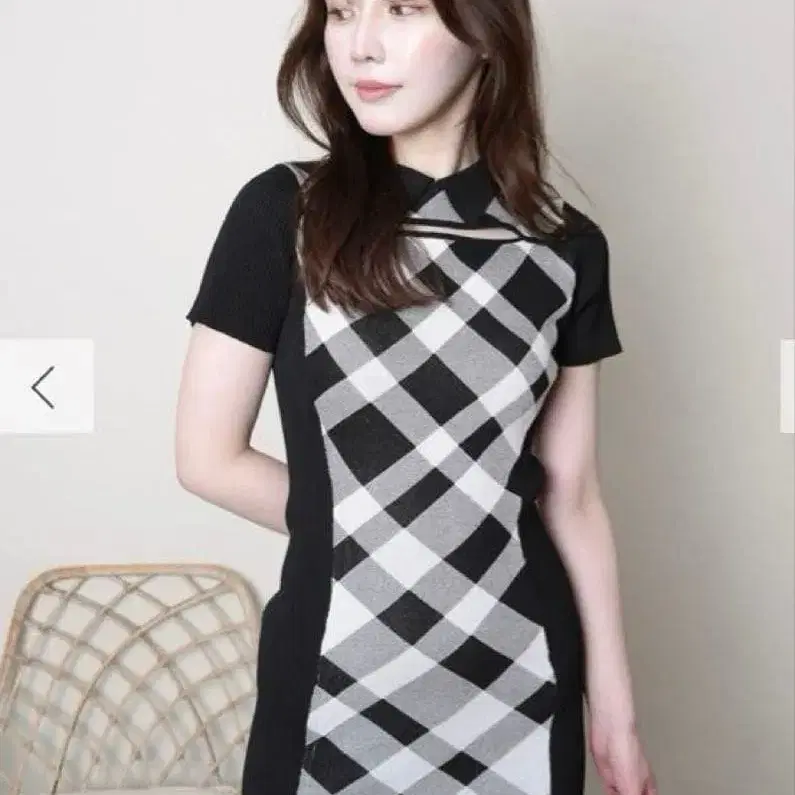 새상품 립 서비스 데콜테 오픈 체크 자카드 원피스