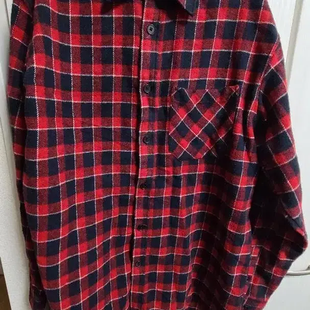 빨간색과 검은색 체크 무늬 긴팔 플란넬 셔츠와 팬츠 세트