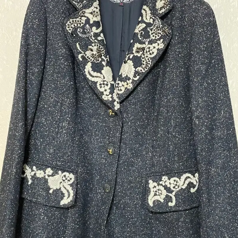 수입 로사 자수 장식 다크 그레이 테일러드 자켓