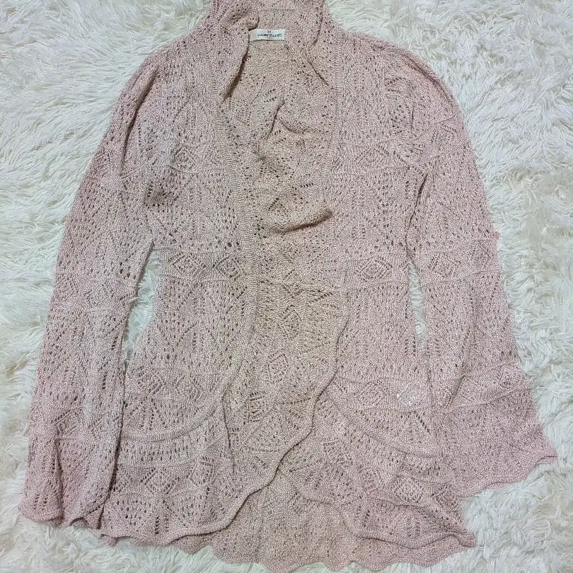 GALLERY VISCONTI 핑크 레이스 가디건 얇은 소재 비침