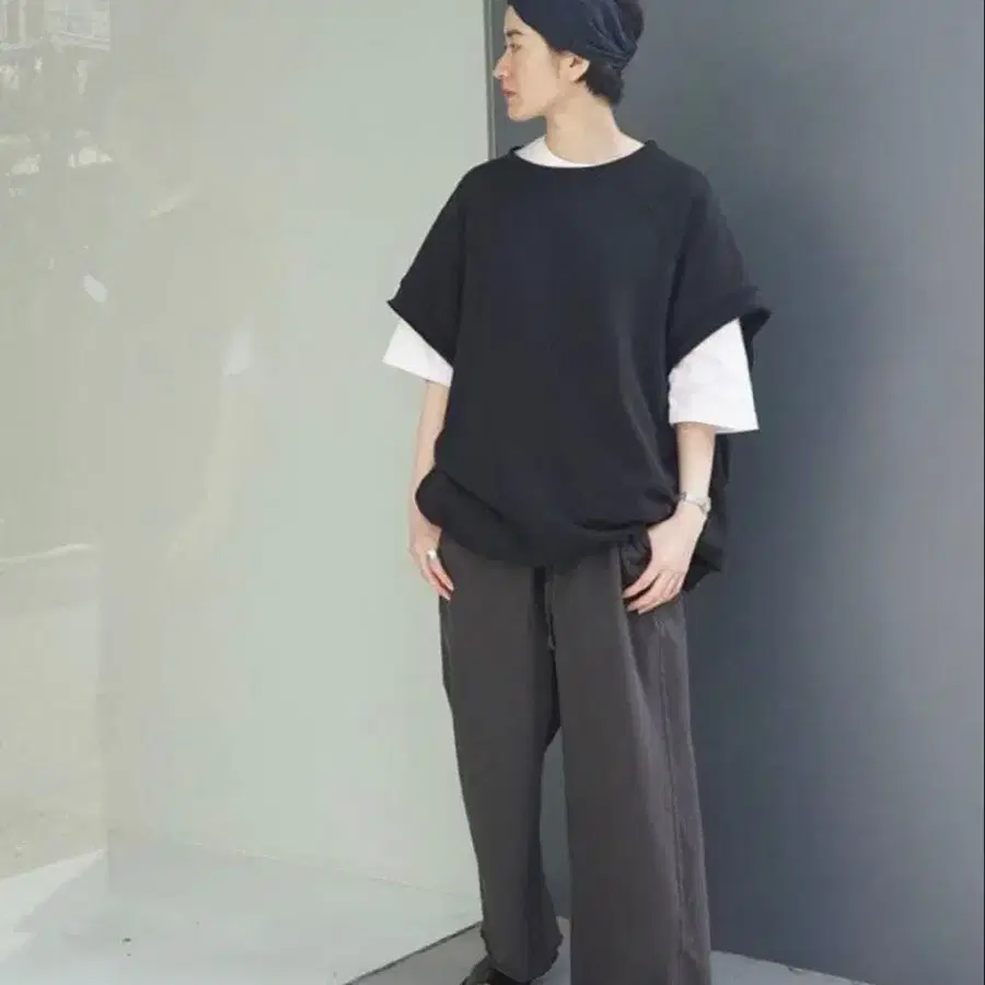 컷오프된 소매의 숏 슬리브 맨투맨 풀오버는 터틀넥이나 셔츠와 레이어드하여 즐길 수 있으며,